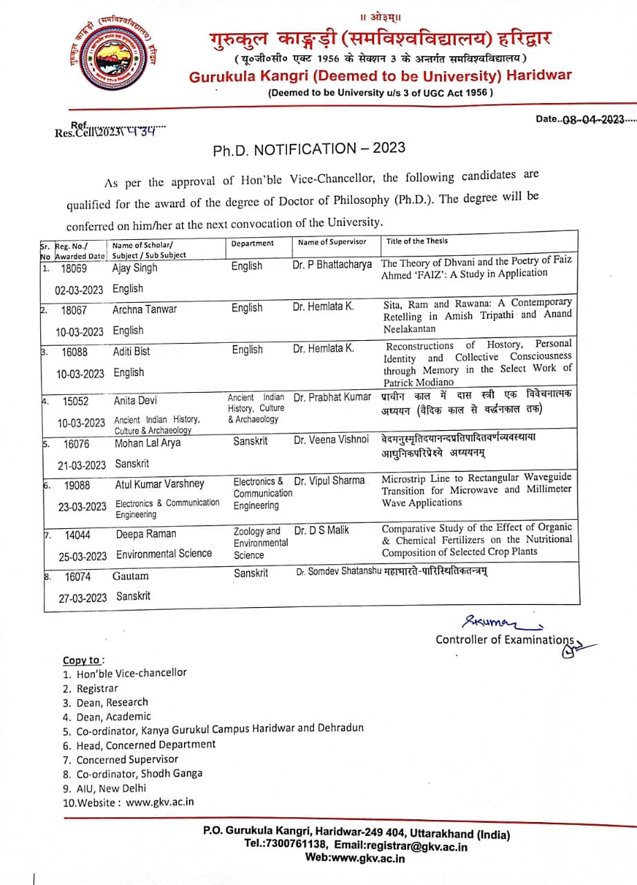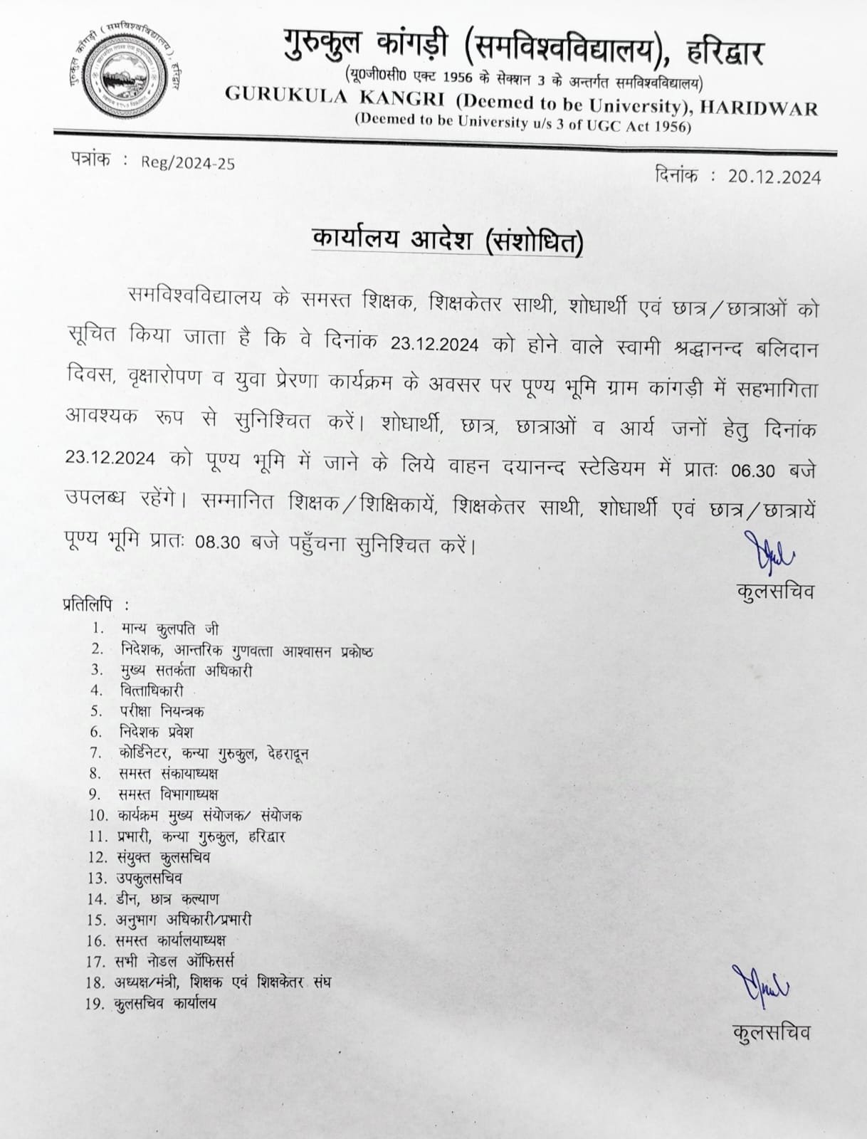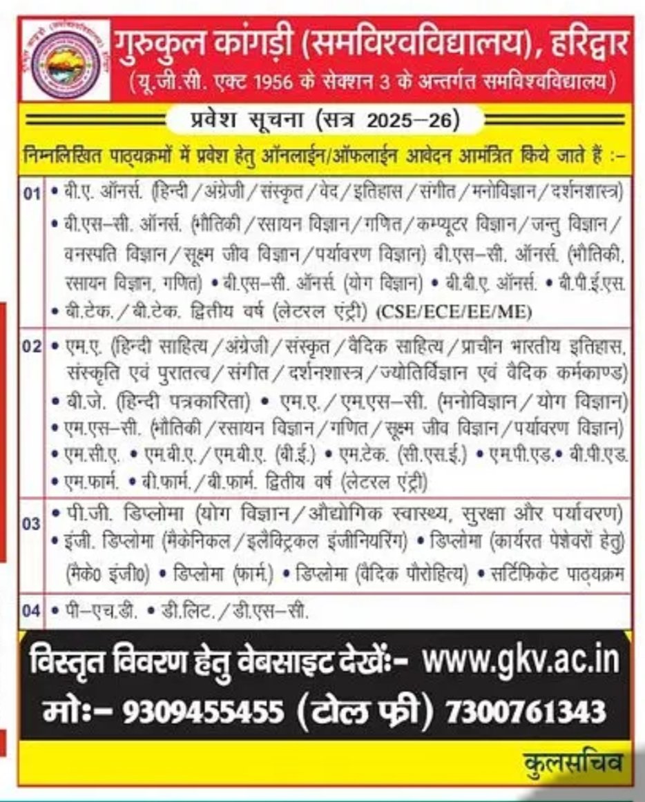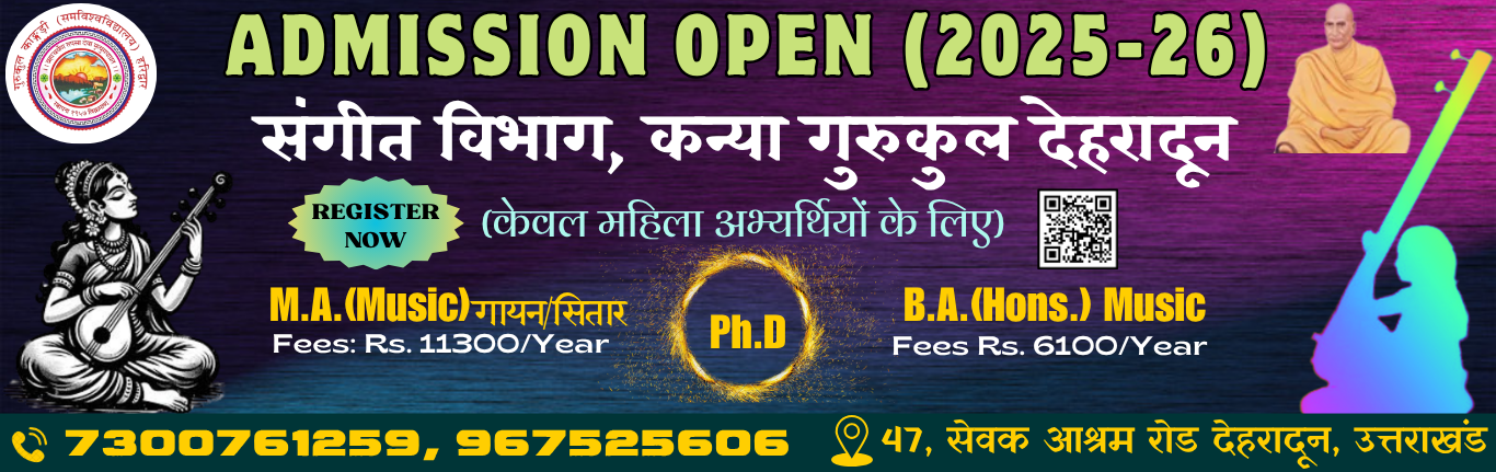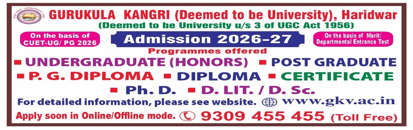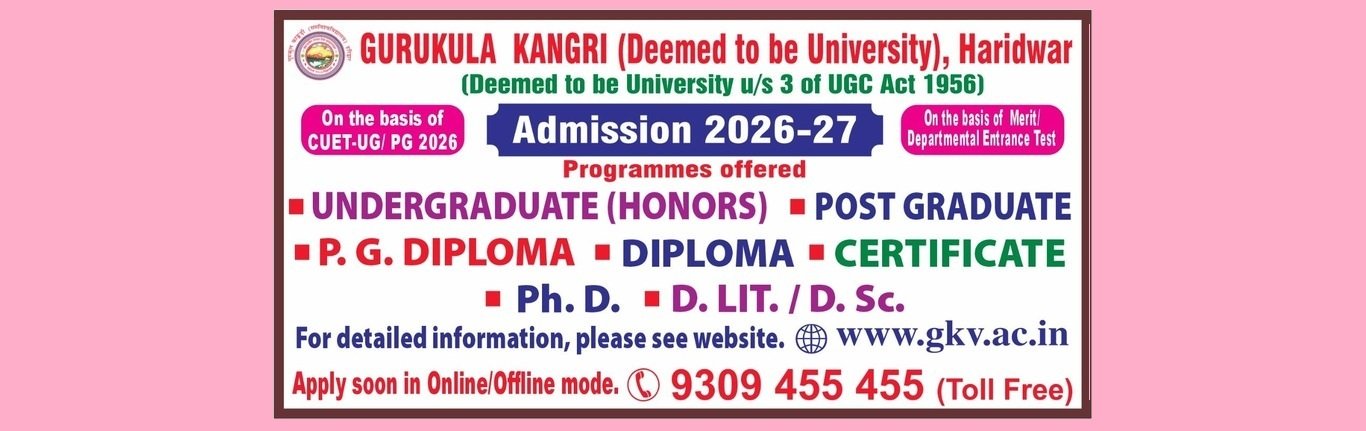 Gurukula Kangri (Deemed to be University) was founded on March 4, 1902 by Swami Shraddhanandaji with the sole aim to revive the ancient Indian Gurukula System of education, on the bank of Ganges at a distance of about 6 km. from Hardwar and about 200 km. from Delhi. This institution was established with the objective of providing an indigenous alternative to Lord Macaulay’s education policy by imparting education in the areas of vedic literature, Indian philosophy, Indian culture, modern sciences and research.It is a deemed to be university fully funded by UGC/Govt. of India.