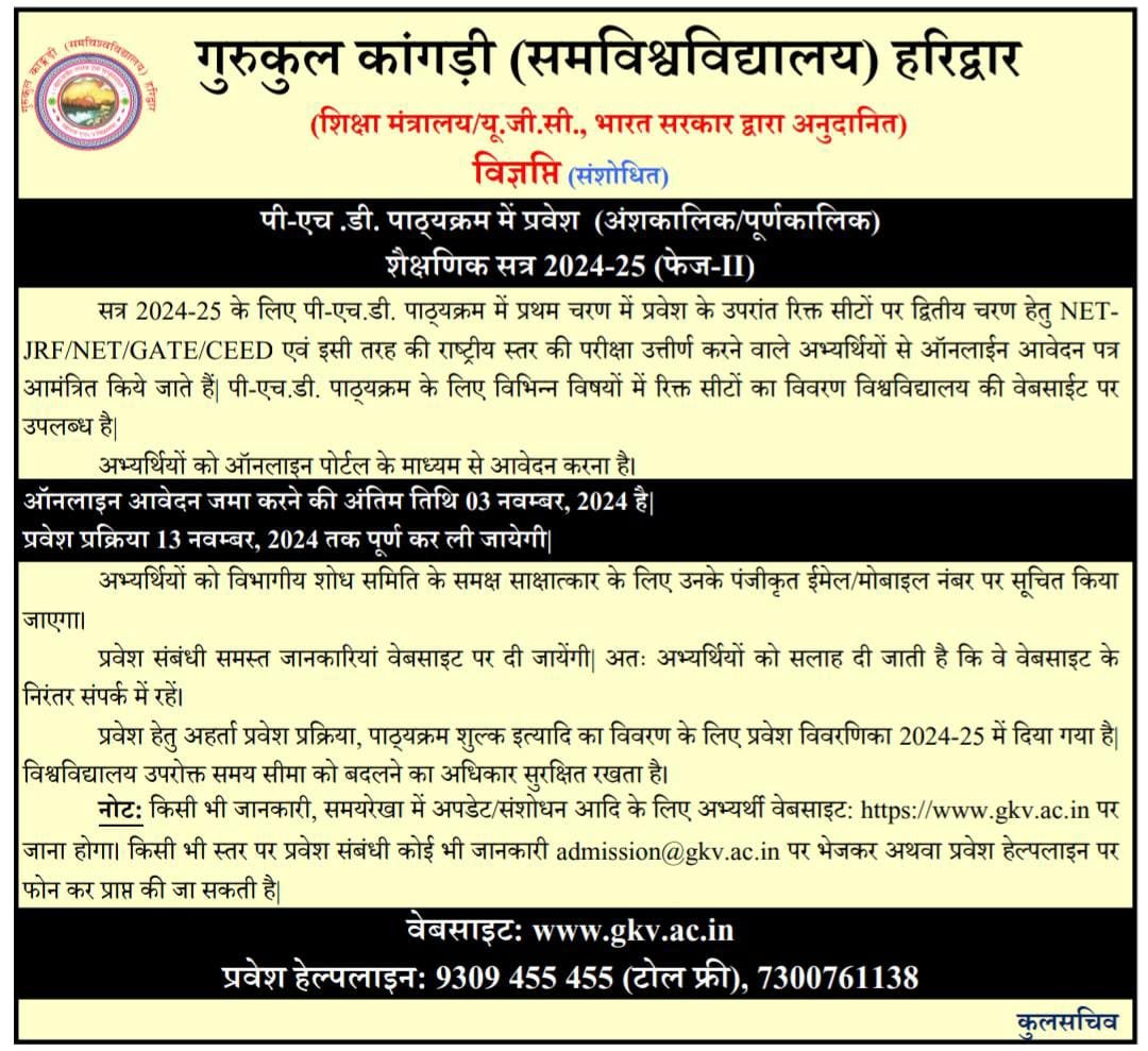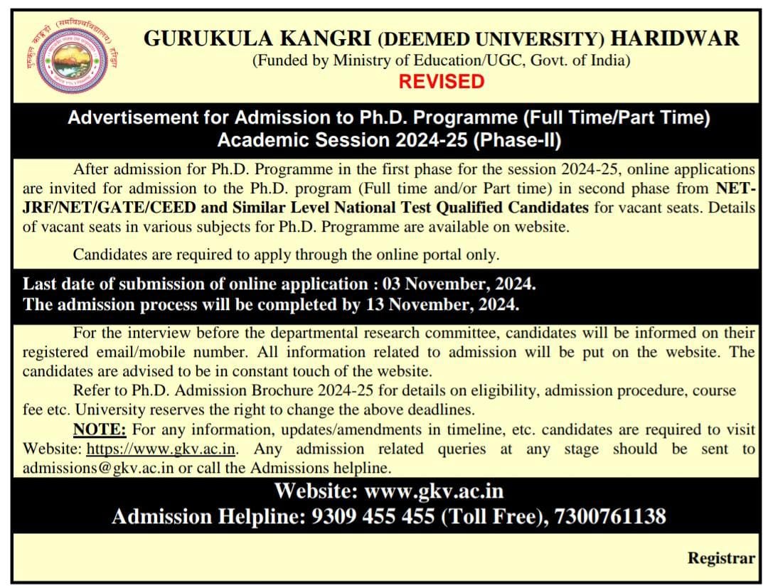 Only Ph.D. and D.Lit/D.Sc. Admissions are re-opened.