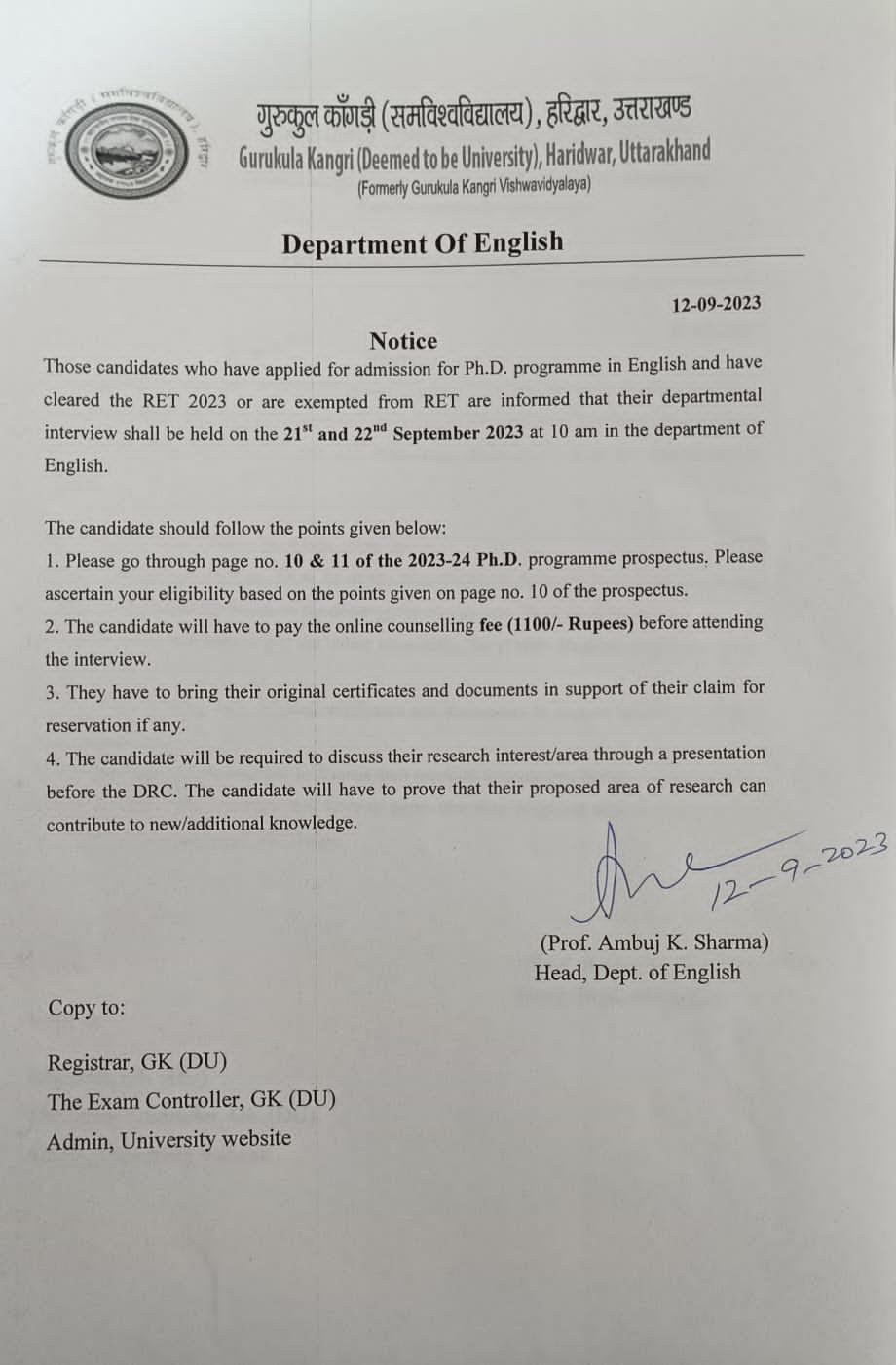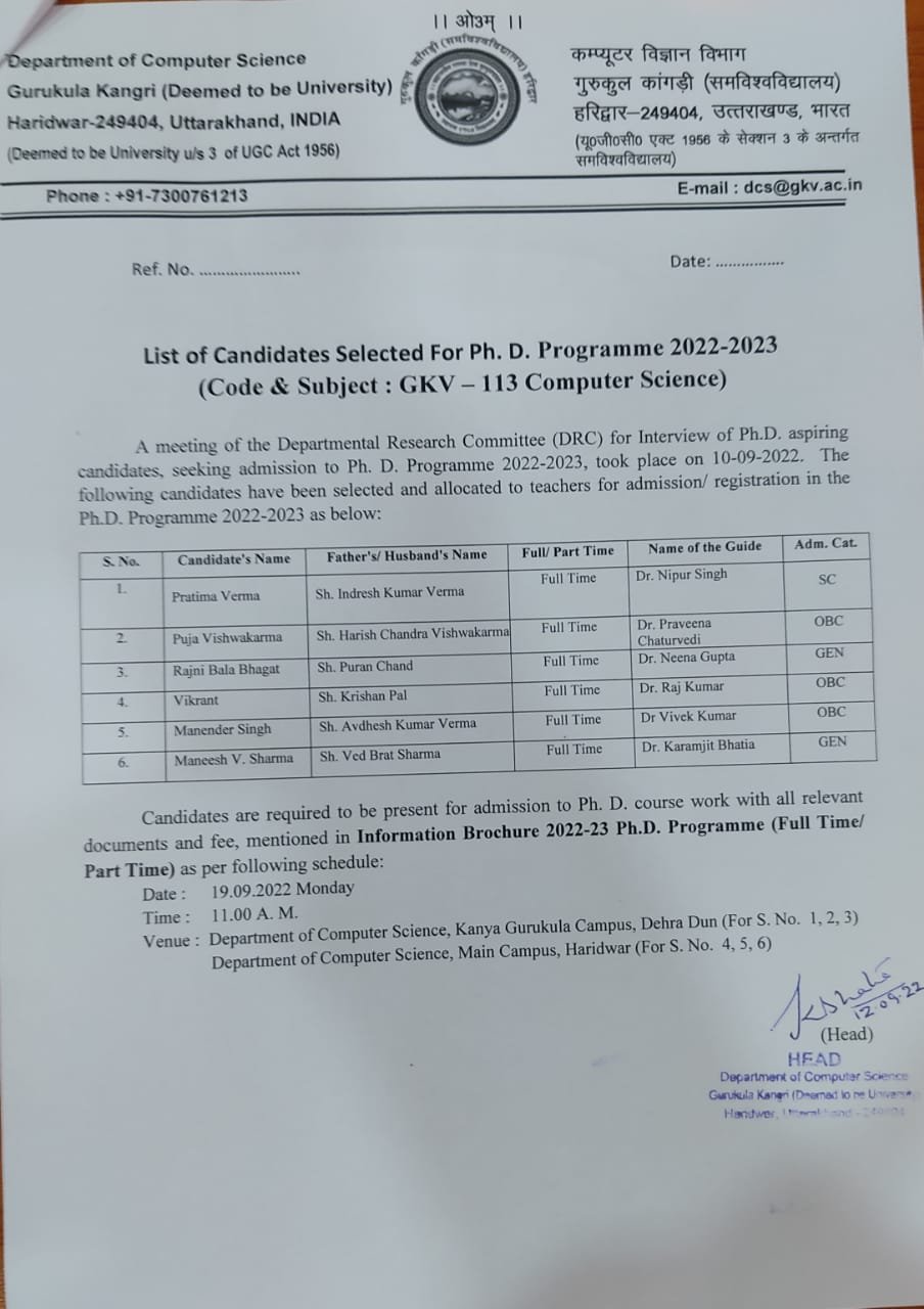 30-06-2023 :: Last Date for Submission of form for Ph.D. admissions has been extended to 15th July 2023