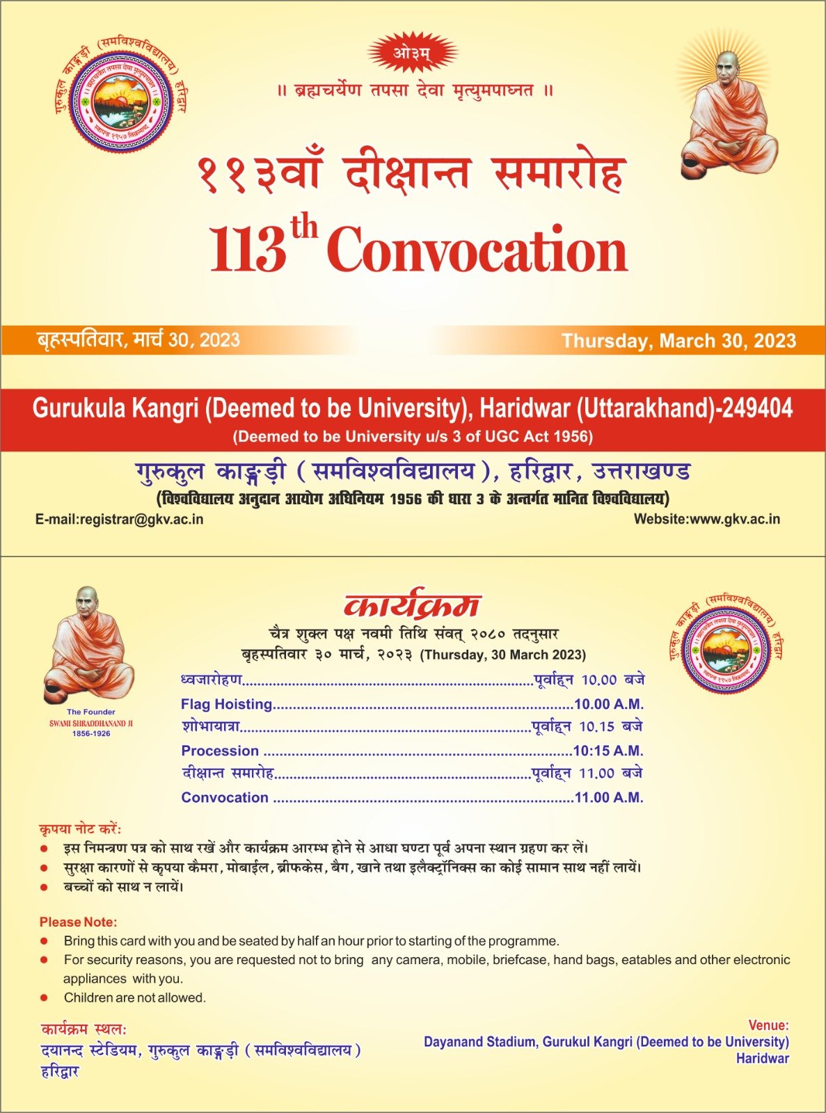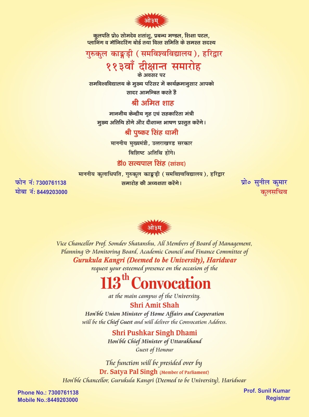 113th Convocation of the University in the gracious presence of Hon’ Minister Shri Amit Shah ji, Ministry of Home Affairs and Ministry of Co-operations has been preponed for 30.03.2023