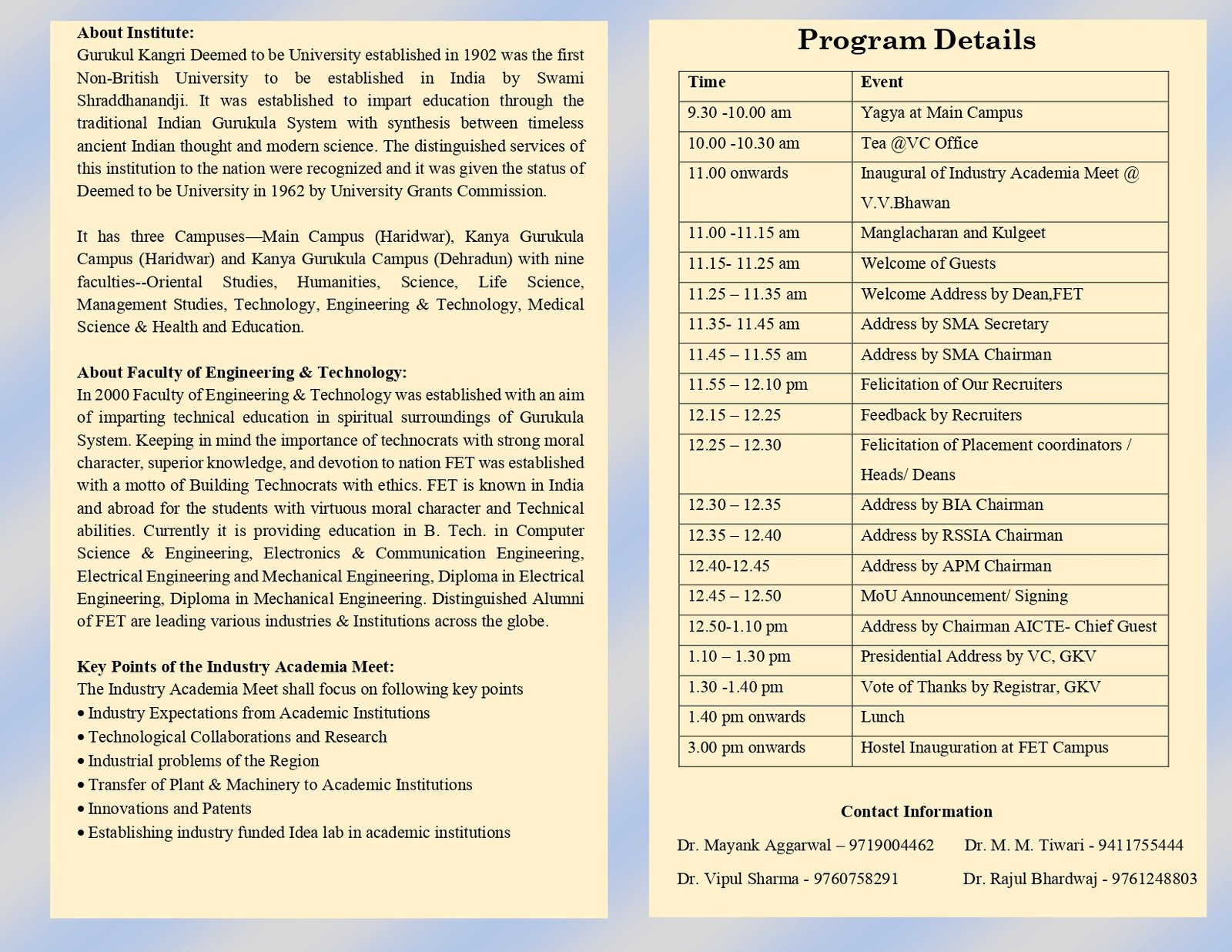 Venue: Vishwavidyalaya Bhawan, GKV.