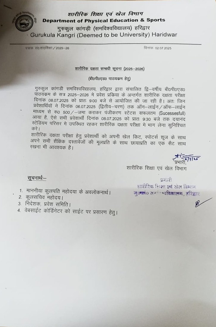 Physical Efficiency Test for Admission to B.P.Ed. (Round II)